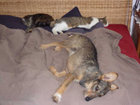 Lucy - vormals Freya - geht es gut und auch die Katzen sind sich schon ziemlich sicher, daß dieses quirrlige Ding ihnen nichts Böses anhaben mag.
