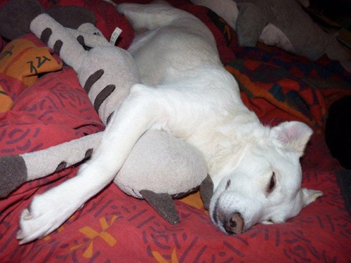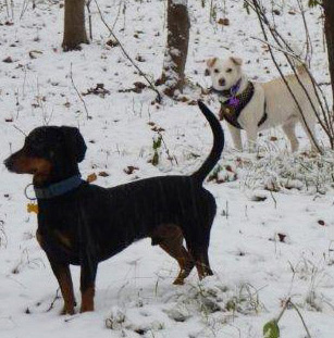 ich hoffe, Sie hatten schöne Weihnachtstage und rutschen nun in ein gutes Neues Jahr mit viel Gesundheit, Glück und Zufriedenheit. Ich bewundere Ihr großes Engagement für die Tiere und bin sehr froh, dass es Menschen wie sie auf unserer Welt gibt. Nein, nein, wir haben nicht noch einen neuen Hund - der große schwarze Welpe ist die Hündin (Lilly) meiner Eltern, ein ganz liebes Mischlingsmädchen, das sie aus Graz "gerettet" haben, wo sie bei einer Familie war, die sie durchgehend angebunden hatten und nie spazieren waren. Aber natürlich ist es mir besonders wichtig, dass sich unsere drei Hunde sehr gut miteinander verstehen, denn man weiß ja nie wielange meine Eltern fit sind und Lilly wird ja hoffentlich auch lange leben. Wir suchen ohnedies ein Haus mit Garten in der Nähe meiner Eltern, bei Bedarf kann ich sie dann auch leichter entlasten. Luna ist nicht so leicht mit anderen Hunden zu vergesellschaften, es macht ihr immer noch Stress und sie weicht beim Spazieren gerne weiträumig aus, städtische (winzige) Hundezonen sind ein "no go" für sie, aber von denen halte ich ja auch nicht gerade viel. Mit der Hündin meiner Eltern geht es aber sehr gut, Dario ist noch ausreichend verspielt, um mit Lilly oder anderen Hunden beim Spazierengehen zu spielen, Luna spielt prinzipiell nur mit Dario, selten gewinnt eine neue Hundebekanntschaft ihr Herz soweit, dass sie auch mit dieser "ein bisschen" spielt. Aber es wird immerbesser,....eigentlich bin ich ganz begeistert wie sie sich inzwischen entwickelt hat, wenn ich da zurückdenke, wie sie sich bei ihrer Ankunft voller Angst nur hinter dem Weihnachtsbaum versteckt hat - und das über Wochen (wir trauten uns erst gar nicht ihren Schutzbaum abzubauen ;-), erst langsam die Wohnung für sich erobernd, dann irgendwann gelernt mit Dario zu spielen (Quietschpupperl und sonstiges Hundespielzeug interessiert sie immer noch nicht, auch wenn der arme Dario so gar kein Verständnis dafür hat und es immer wieder probiert sie dafür zu begeistern), zunehmend schmusiger geworden - beim Spazierengehen superbrav und folgsam - und einfach schön, dass sie nun im Vergleich mit den ersten Monaten bei uns soviel fitter geworden ist, dass sie über umgefallene Baumstämme springt (!!!) und einfach so richtig schnell rennen kann... - wenn sie will - und sie hat zunehmend Spass daran sich richtig "auszulaufen". Mein jüngerer Sohn Noam (bald 7) hat sich übrigens ganz besonders in Luna verliebt und verwöhnt sie täglich mit besonders liebevollen Massagen ;-) Ich schicke Ihnen im Anhang noch ein paar Bilder der letzten Tage – die Schneefotos sind als Suchbilder (Luna in weiß auf weiß) zu verstehen ;-