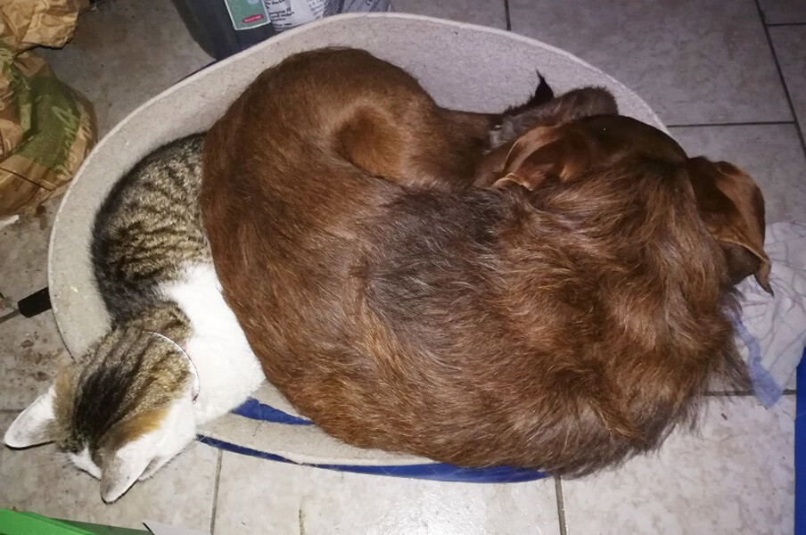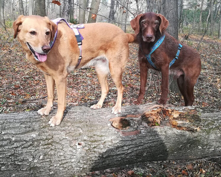 Lang, lang ist's her, dass wir Erni und Mack adoptiert haben. Beiden geht es immer noch super, Mack wird im September stolze 13 Jahre alt, man merkt ihm sein Alter aber kaum an und wir hoffen natürlich, dass er alle Rekorde brechen wird 😉. Auch Erni ist nach wie vor fit und spielt auch noch sehr gerne mit unserem dritten Hund, den wir inzwischen haben. Beide sind bereits das 4. Jahr mit mir im schulischen Einsatz (staatlich geprüfte Therapiehunde) und ich bin so unendlich dankbar für jeden Tag, den sie an unserer Seite sind. Vor 2 Wochen sind wir in unser neues Haus gezogen (Eigentum), die Hunde (und unsere 11 Katzen) haben jetzt fast 1400 m² Grund zum Austoben.
