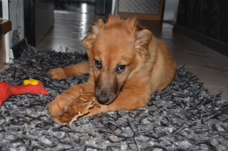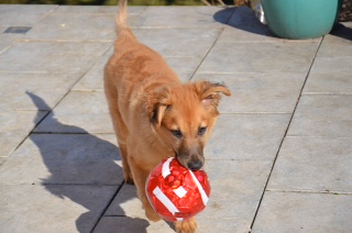 anbei die ersten Fotos von unserem Goldschatz Maddy. Sie hat sich schon super eingelebt u. hält unsere Katzen ganz schön auf Trab. Maddy hat die Herzen von uns allen erobert, einschließlich der Nachbarn u. der Tierärztin, wo wir gerade in Behandlung sind (Durchfall). Trotzdem hat sie schon 2kg zugenommen. Wir möchten uns ganz herzlich bedanken, dass wir Maddy in unserer Familie aufnehmen durften.