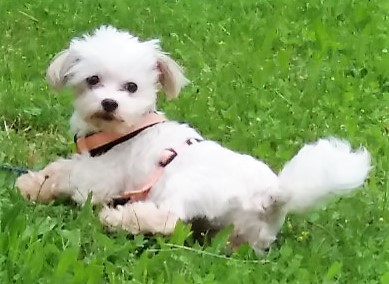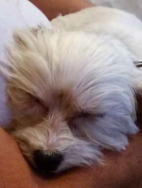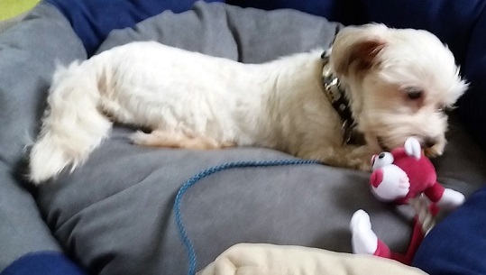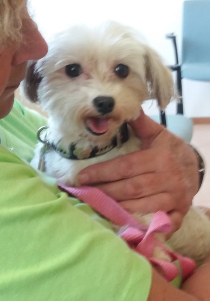 Ich sende Ihnen ein paar Fotos von Maggie, die sich bei meiner Mama wohl fühlt.