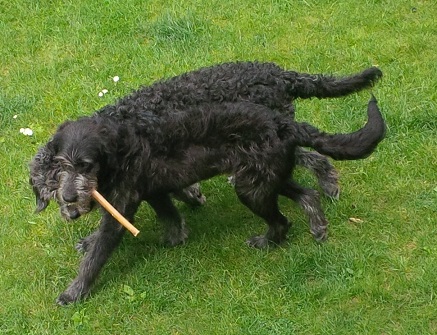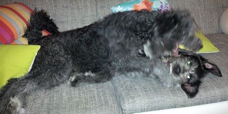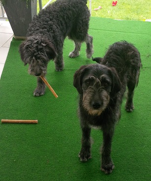 Vielen Dank! Ja alles noch OK, staubsaugen ist jeden Tag angesagt – die beiden kugeln und rangeln jeden Vormittag Stundenlang bis sie umfallen und bis am späten Nachmittag schlafen. Maiko hat die Hoheit über das Revier übernommen und verbellt momentan jeden kräftig, der sich nähert. Er hat auch ganz schön aufgeholt, beide haben jetzt 22,5kg und sind 53cm im Stockmaß. Husten ist Dank Immunsystem-pushup weg und seine Beine und Gelenke sind kräftig und stark – das beweist er uns täglich bei den Spaziergängen.