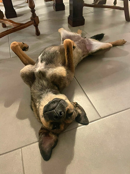 Sie verträgt sich mit allen Hunden super, nur an der Leine ist es noch schwer, da sie noch nicht so ganz verstehen möchte, dass sie nicht jeden Hund begrüßen bzw. zum Spielen auffordern muss. Der Rückruf klappt schon gut, sogar wenn sie spielt. Sie weicht mir nicht von der Seite.