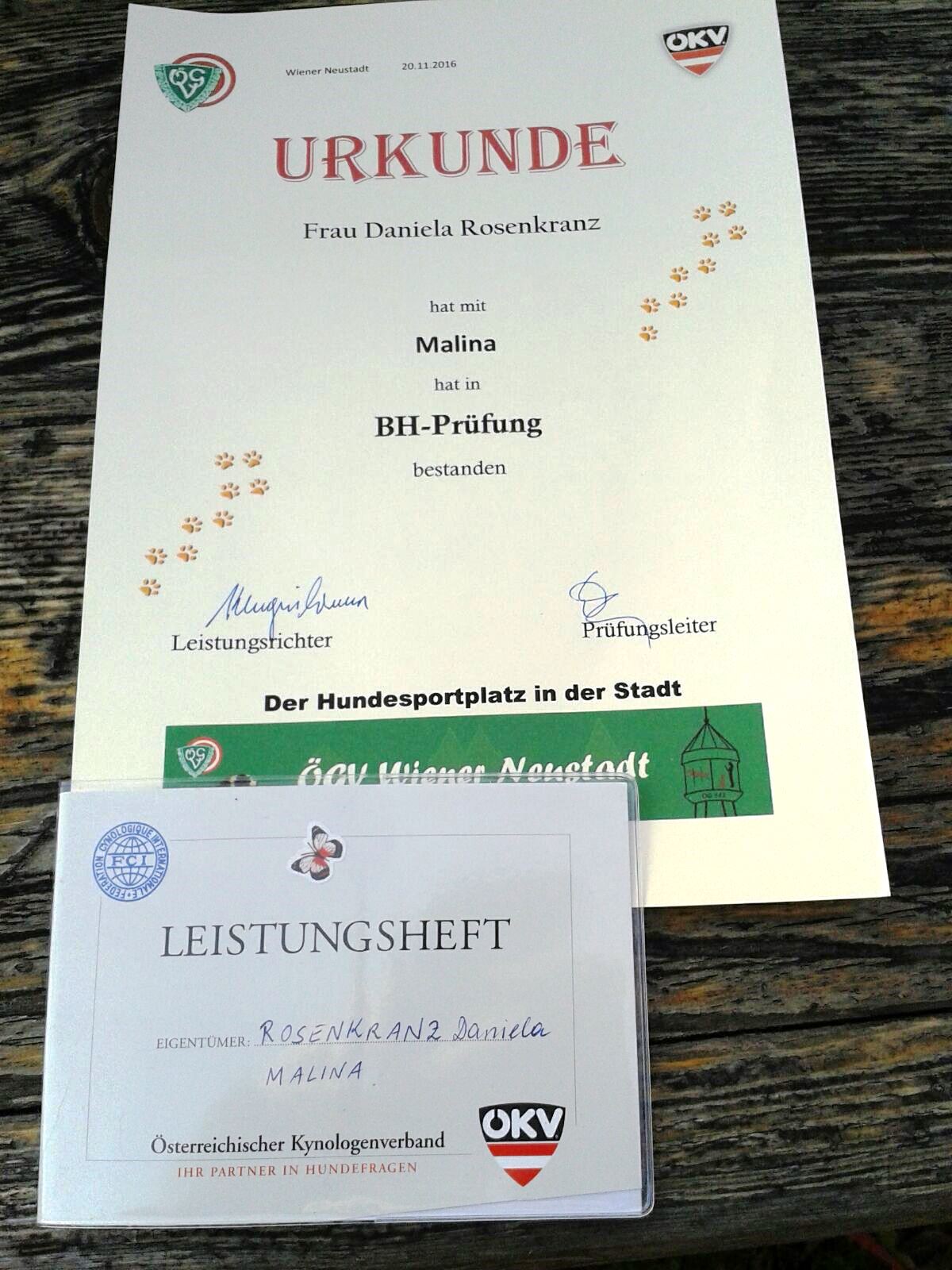es freut mich voller Stolz verkünden zu dürfen, dass Malina und ich heute unsere BH-Prüfung und den Verkehrstest bestanden haben. Mein kleiner Wildfang war superbrav :-)