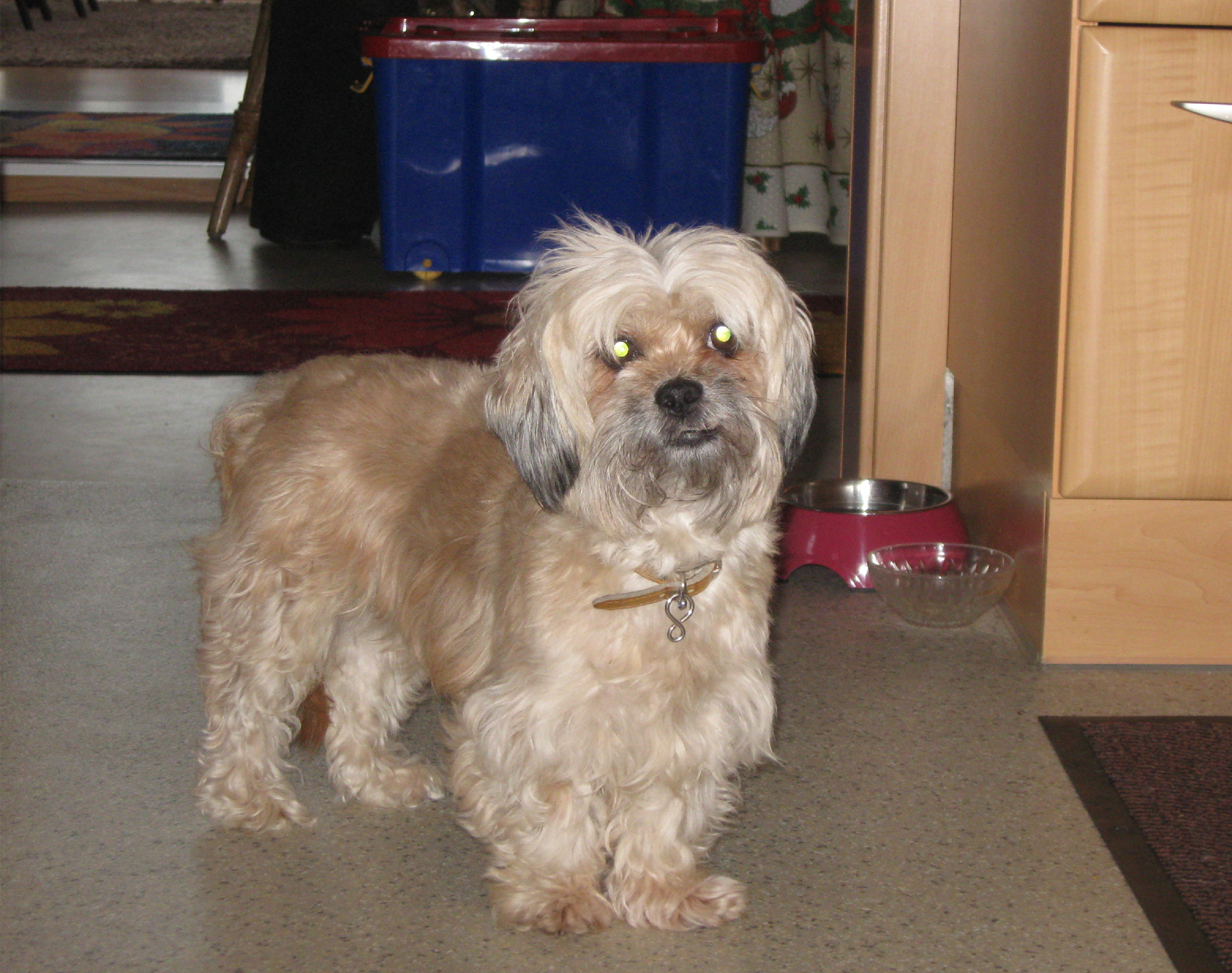 Mein Name Mandy, bin 2,5 Jahre, komme aus Ungarn, wer meine Eltern sind weis ich nicht genau, die Mama sicher eine Shizu, und habe seit 19. Jänner 2013 ein neues Frauchen/Herrchen bekommen, mir gefällt es hier sehr gut, habe schon etwas zu genommen.