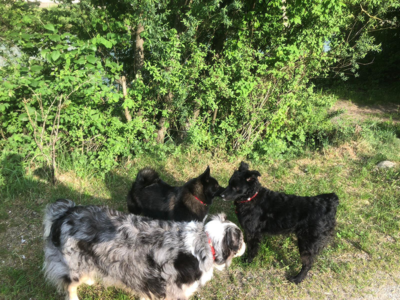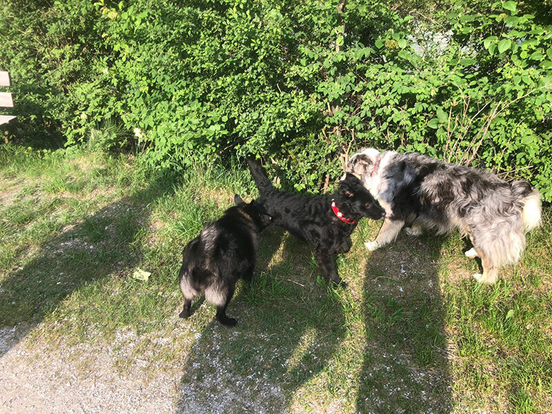 Er begleitet mich inzwischen mit in den Stall und liegt brav neben dem Reitplatz. Auch seine Hundefreunde trifft er dort immer 😁.