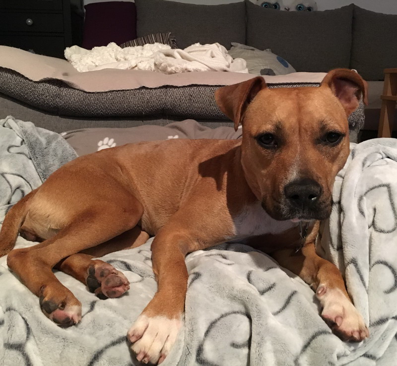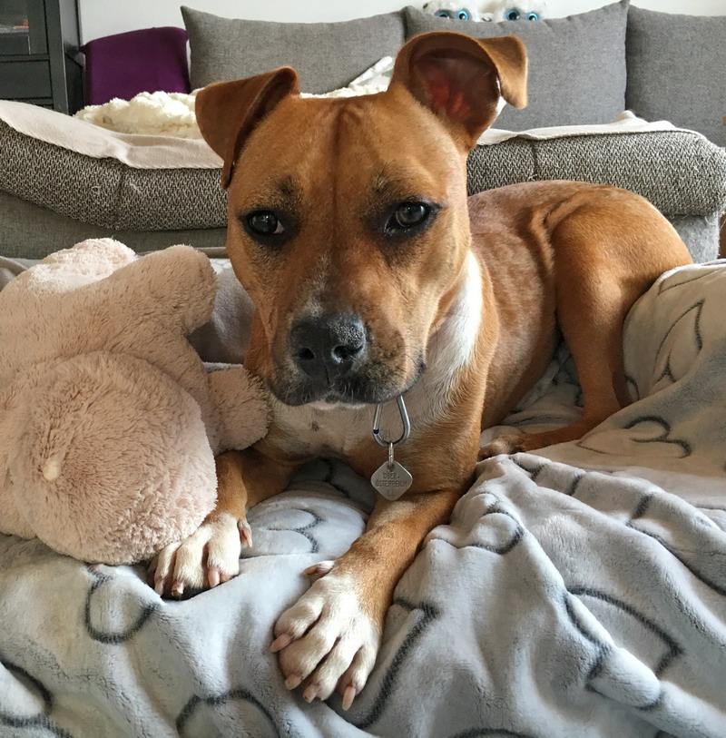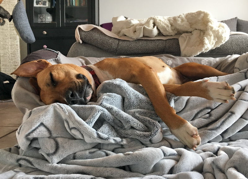 Maya kuschelt am liebsten in ihrem Hundebetti und holt sich ihre Schmuseeinheiten von uns ab!