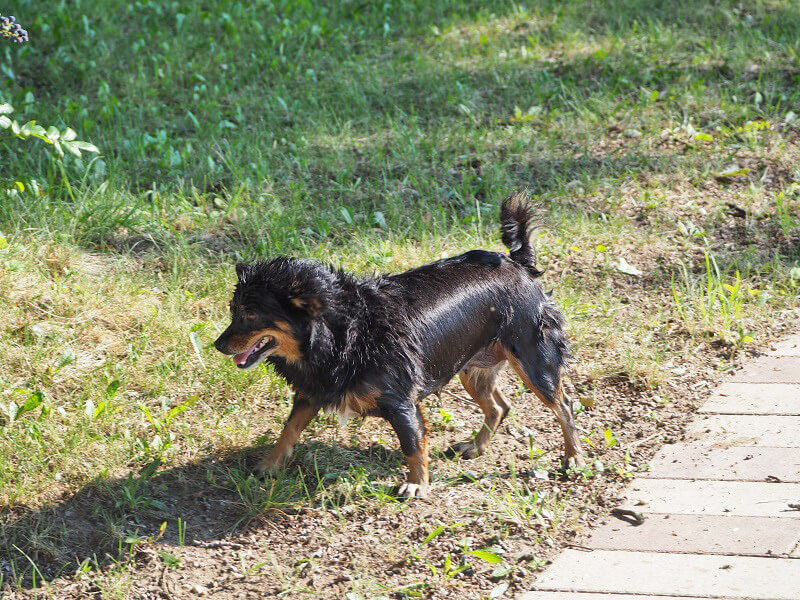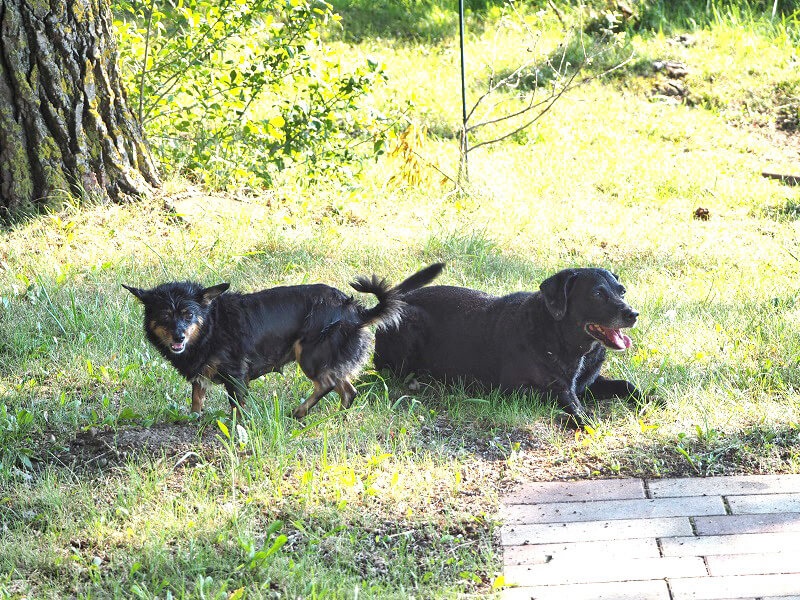 Mici geht es sehr gut, sie hat herausgefunden, dass sie sehr gut schwimmen kann und hat sich seither zu einer regelrechten Wasserratte entwickelt. Außerdem sind sie und unsere andere Hündin Mali inzwischen ein Herz und eine Seele und sind unzertrennlich.