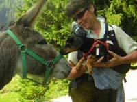 Auch die geplante Wanderwoche, recht kurz nach Übernahme eines Hundekindes, sollte nicht abgesagt werden: Klein-MIKI kam in´s noch vorhandene Baby-Tragetuch und Mama trug ihn so manchen Kilometer bergauf, bergab.