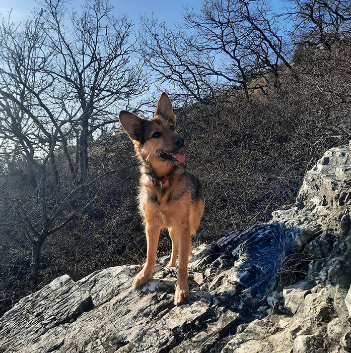 Ich liebe lange Wanderungen und da ich keine Jagdambitionen habe darf ich frei laufen und mich so richtig auspowern. An der Leine gehen macht mir weniger Spaß, aber es muss manchmal sein.