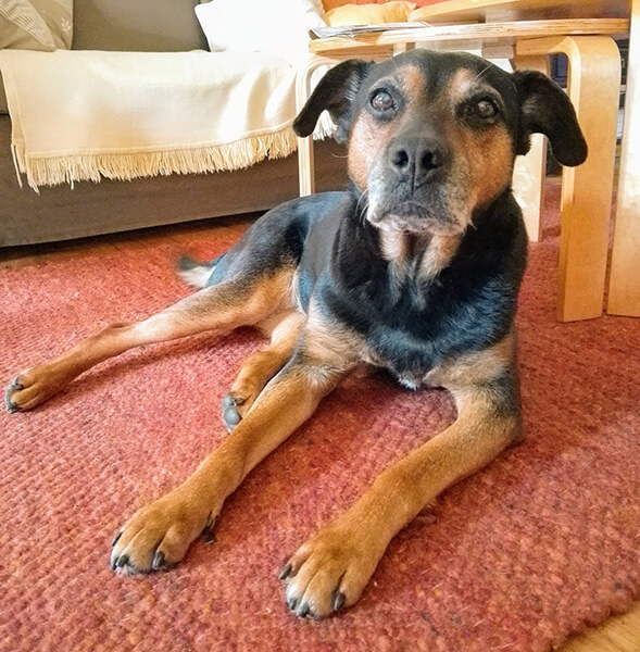Ihrem Alter entsprechend (fast 14) ist sie ziemlich gemütlich, aber recht fit. Wir genießen jede Minute mit ihr.