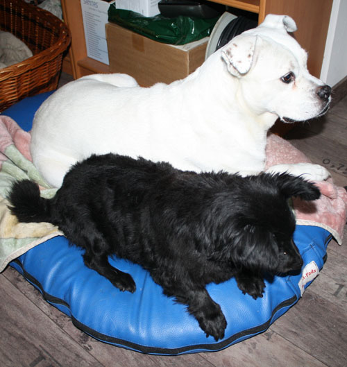 Anbei ein paar Fotos. Mimi geht es seit der Operation supergut, sie wirkt viel aufgeweckter und jünger und wir sind sehr glücklich, dass wir sie haben. Sie geht auch ohne Leine in der Hundezone und es ist kein Problem. Bitte schicken Sie der Tierpflegerin aus Ungarn diese Mail weiter, wir haben es versprochen, danke.