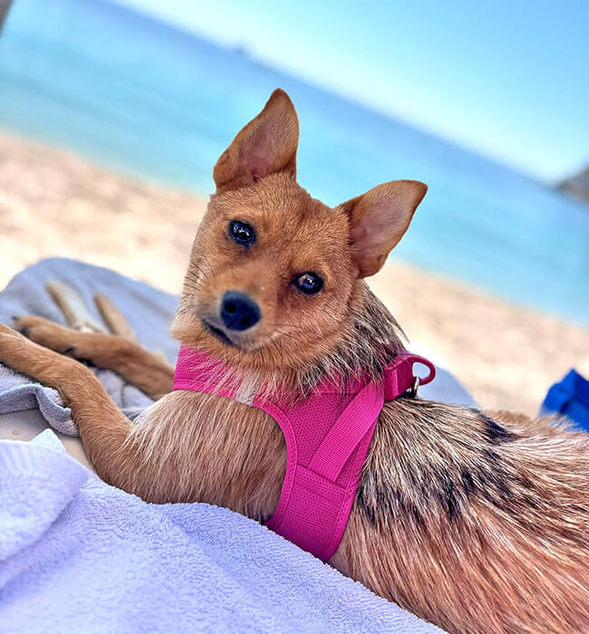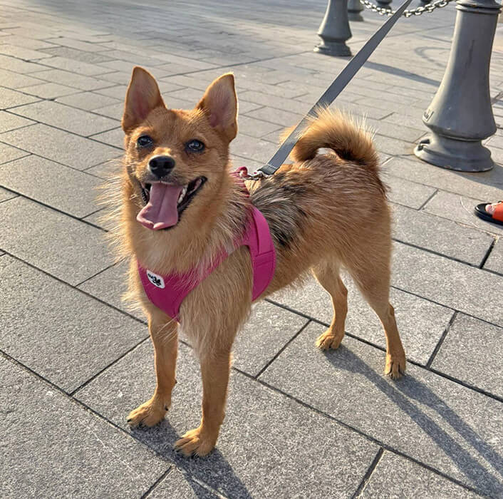 Zuhause bereits die Chefin und auch auswärts wird sie immer sicherer (das war anfangs nicht so einfach). Aber mittlerweile kein Problem mehr das spazieren gehen. Immer Schwänzchen in der Höhe und ganz selbstsicher.