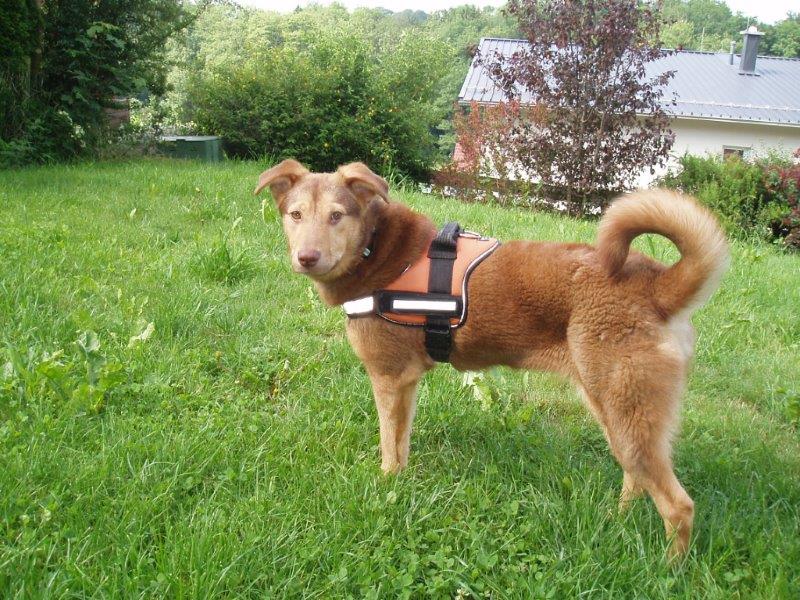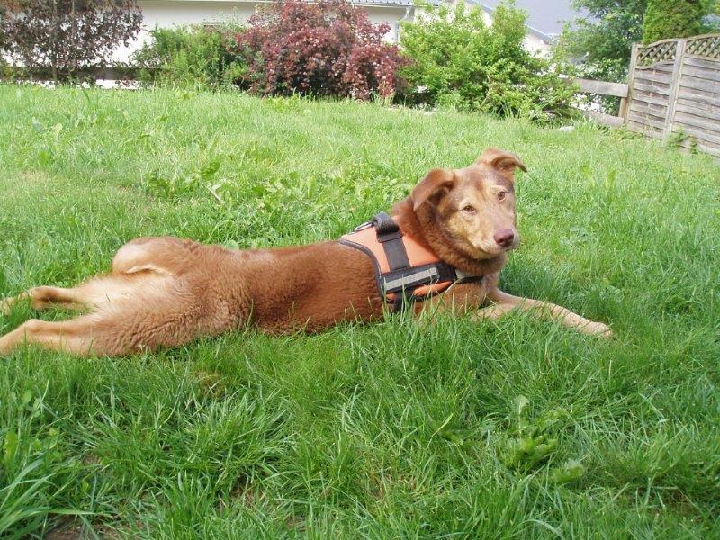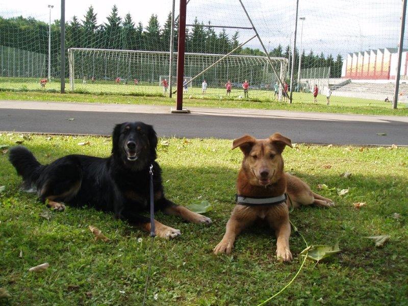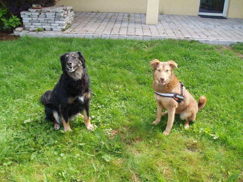 Habe die Schutzgebühr gleich heute überwiesen. Hier mal ein paar Fotos für dich- nachdem meine Kamera jetzt wieder funktioniert, werde ich in den nächsten Tagen noch ein paar bessere Fotos machen- aber für einen ersten Eindruck wollte ich dir diese Mal schicken. Ich bin total glücklich, dass wir uns nun endlich entschieden haben und das Mimi jetzt mein Hund ist. Das war wirklich einfach Schicksal, dass mich mit diesem Hund zusammengeführt hat. In den letzten zwei Wochen ist aus diesem völlig panischen Hund der nur versucht hat irgendwie zu flüchten ein fröhlicher kleiner Hund entwickelt. Mimi hat schon viel gelernt und ist um einiges mutiger geworden, egal ob Autos, Radfahrer, Treppensteigen,... so schnell bringt sie nichts mehr aus der Ruhe. Sie findet die Welt da draußen nun nicht mehr beängstigend, sonder superspannend- sie freut sich wie verrückt über einen rollenden Stein, lange im Wind flatternde Grashalme oder Stängel von Blumen. Und jetzt wo sie immer mehr aufblüht, bringt sie mich oft zum lachen, z.B. wenn sie gaaaanz wichtig ihre Kauknochen im Regal hinter den Büchern versteckt oder vor lauter Elan beim Spaziergang einen Purzelbaum ins lange Gras macht. Sie folgt mir wie ein Schatten und achtet auch beim Spazierengehen oder beim Spielen am Hundeplatz immer darauf, wo ich und Kimba sind. Auch Sitz, Platz und Bleib sind keine Fremdwörter für sie. Sie freut sich wenn wir mit dem Auto fahren und springt sofort rein, wenn die Kofferraumtür aufgeht- sie freut sich aber auch wenn wir wieder nach Hause kommen und hüpft dann fröhlich durchs Haus. Unternehmungen und Spielen mit Kimba stehen natürlich an erster Stelle ihrer Hitliste, die beiden sind superdicke Freunde, wie man auch an ihren Schlafpositionen sieht oder daran, dass Mimi ihre Nase sogar in Kimbas Napf stecken darf. Auch im Kontakt mit fremden Menschen klappt es immer besser (Kimba ist da ja ein tolles Vorbild- sie kuschelt in vorderster Front und Mimi kommt dann auch neugieriger immer näher- immer öfter ist sogar kraulen schon drin.) Und diese fremden Mensche haben ja auch immer so leckere Sachen für sie, wie das wohl kommt? :-)