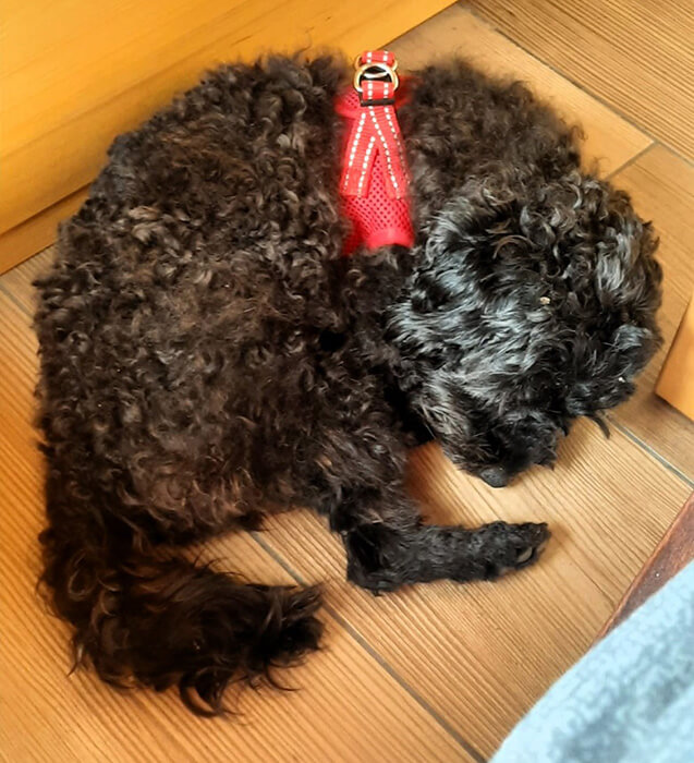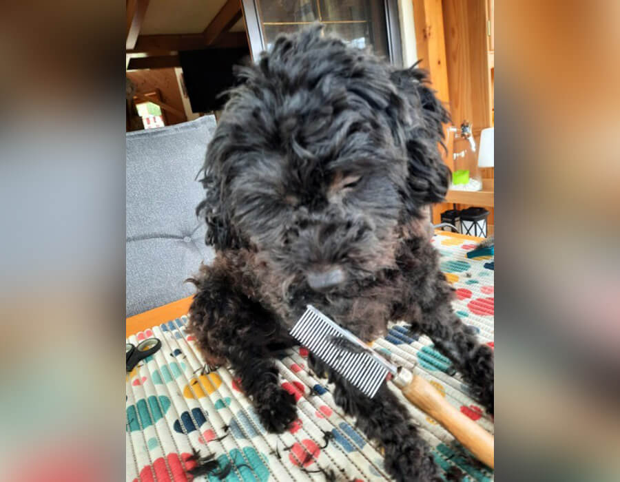 Meine ganzen Fellknuppeln bin ich auch schon los - fast alle - das genieß ich, wenn Claudia an mir herumzupft und schneidet. Bin sogar schon dabei eingeschlafen - total entspannend!! 🙂🐶
