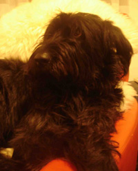 Mona (formerly known as Smaragd) really is the sweetest and most gentle dog ever. We think she might believe she is a cat. I have quite a lot of experience with dogs, but I have never seen a dog that cuddly! She developed from a skinny 28kg to nearly 40kg now. She is not as shy as she was in the beginning, although she still absolutely refuses to get into a car (and a 40kg determined dog is impossible to move).