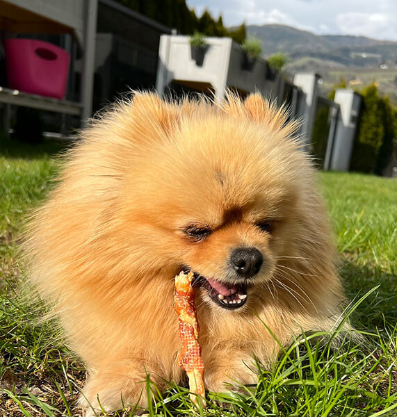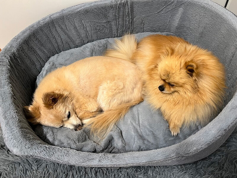 Mit ihrem großen Bruder „Aiko" versteht sie sich auch schon super, die beiden erkunden gemeinsam eifrig die Wälder und Wiesen. Auch die gemeinsamen Nickerchen genießt sie mit ihm.