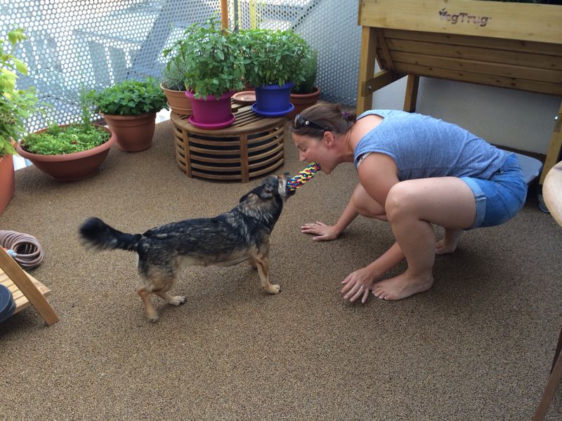 Mein Herrli begrüße ich am Abend wie ein Flummi und dann balgen wir zu Dritt ganz lange herum!