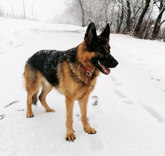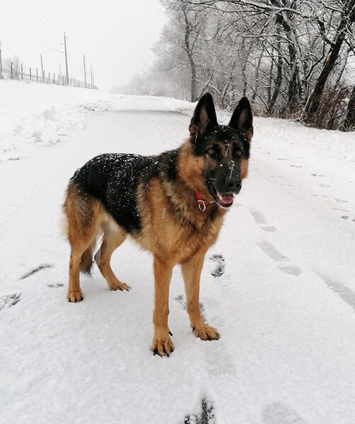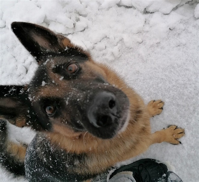 Seine Bekanntschaft mit dem Schnee - bei uns dieses Jahr zur Genüge vorhanden - hat ihm und auch mir Spaß gemacht. Lange Spaziergänge im Schneetreiben taten ihm und mir gut. Anbei ein paar Fotos von ihm, wobei beim letzten das "Platz" nicht so einfach war. Es war eine sehr große verschneites Wiese und einige Kinder rutschten mit Rodeln auf der steileren Seite herunter. Das Gekreische und Gejaule war Nico nicht geheuer. Wir suchten beide bald das Weite.