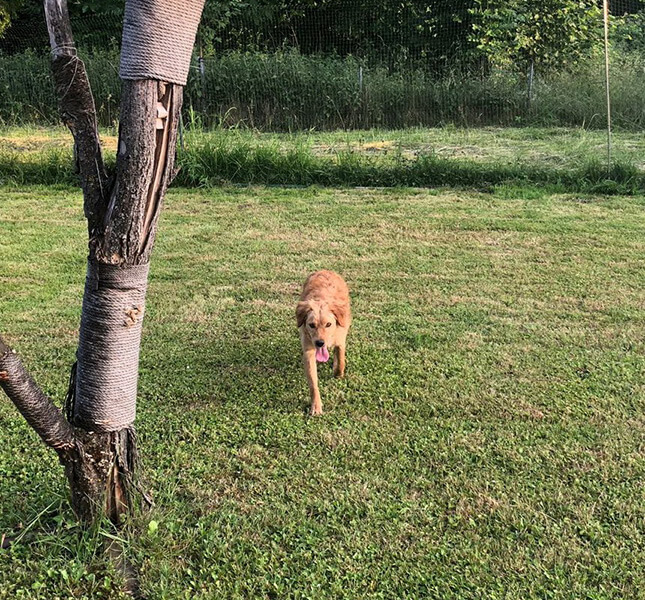 wir sind jetzt Zuhause. Nissa hat gefressen, alles leer getrunken und in der Wiese geludelt. Unsere Katze liegt im ersten Stock am Balkon und beobachtet sie.