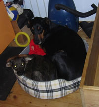 Der Husten ist Gott sei Dank weg, nur wenn sie sich zu sehr anstrengt, röchelt sie ab und zu noch ein bisschen, ist aber alles nicht mehr  schlimm und mit ihrem Opa, dem Chili, versteht sie sich auch sensationell, es wird den ganzen Tag gespielt und wenn sie dann beide müde sind, quetschen sie sich zu zwei in das Körbchen von der Numi und schlafen dann dort zu zweit.