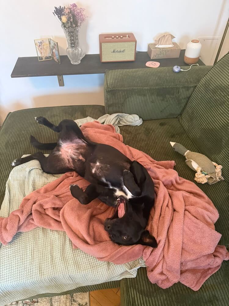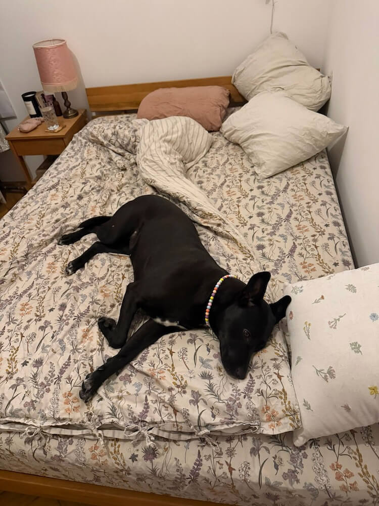 uns geht es wunderbar, sie entwickelt sich prächtig, sie bringt mich jeden tag zum lachen, sie ist der klügste, schönste und süßeste hund den ich je kennen gelernt habe, sie ist super frech, kuschlig, verfressen, mutig und stark, manchmal raubt sie mir den letzten nerv und trotzdem ist jede sekunde mit ihr die beste 🥰 oder wie meine schwester sagt "der LUSTIGSTE hund", sie ist aber auch die beste umarmerin, die schnellste läuferin und ärgste klettermaus, sie hat jederzeit energie ende nie und konnte trotzdem super schnell zur ruhe kommen, aber das üben wir weiterhin und es wird immer noch besser. ich danke euch soooo dafür, mich mit dieser illegal niedlichen hündin zusammen gebracht zu haben, wir wachsen beide permanent aneinander und ich bin so unendlich dankbar dafür!