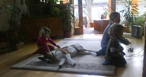 Er spielt mit unseren Hasen und bekommt in ein paar Wochen auch noch eine Katze zum Kuscheln!