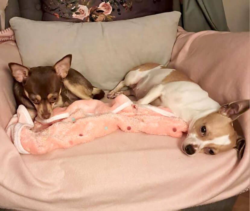 Mit unserem 1jährigen Chi-Mädchen Bonnie freundet sie sich schon langsam an. Trotzdem wird es noch dauern bis sie volles Vertrauen zu uns hat. Aber alles braucht seine Zeit.