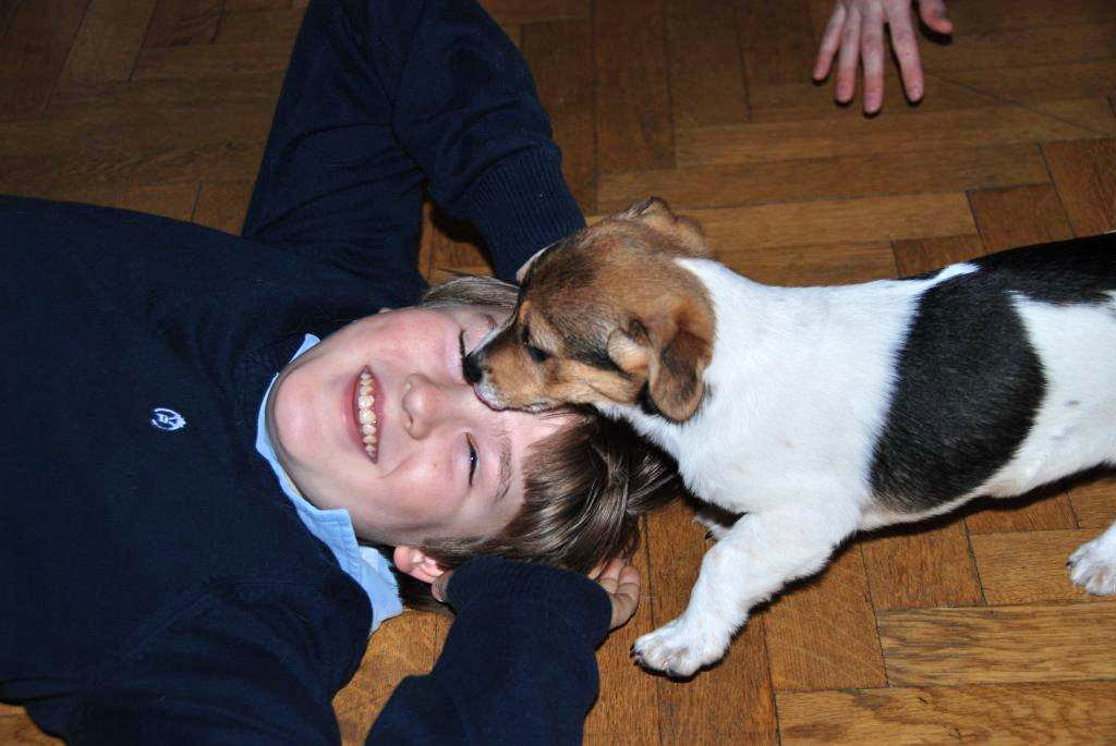 weil Bilder bekanntlich mehr sagen als tausend Worte, schicke ich Ihnen hier ein paar Schnappschüsse von Penny in ihrem neuen Zuhause. Unnötig zu sagen, dass sie alle Familienmitglieder um den Finger wickelt, inklusive Katze, die gern mit ihr Fangen spielt...