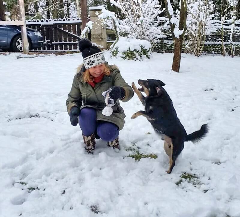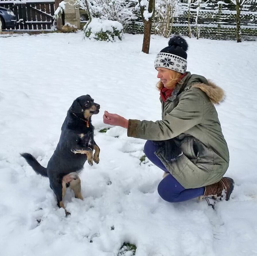 Pepe liebt den Schnee sehr. Die mitgeschickten Fotos zeigen das auch.
