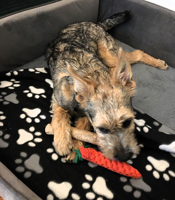 Pepi ist nun eine Woche bei uns und wir könnten glücklicher nicht sein. Er kann schon ein paar Kommandos wie Sitz und Platz und liebt sein neues Bettchen (das andere war ihm doch schon etwas zu eng). Seit gestern fängt er an, unsere Gassen zu erkunden und neugierig herumzuschnüffeln, also können wir zu unserer Überraschung schon kleine Spaziergänge machen, was sehr viel Spaß macht. Zudem macht er kaum in die Wohnung und macht sein Geschäft mittlerweile eigentlich immer draußen.