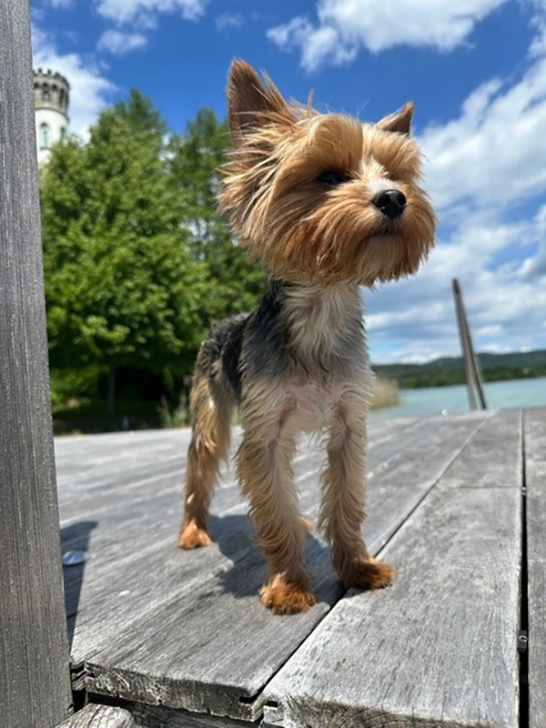 Den Sommer über hat er Freude am Schwimmen entwickelt und fährt gerne mit mir mit dem Stand Up Paddle. Fremde Menschen bzw. neue Umgebungen sind ihm nicht immer ganz geheuer bzw. braucht er da etwas Zeit - aber es wird immer besser.