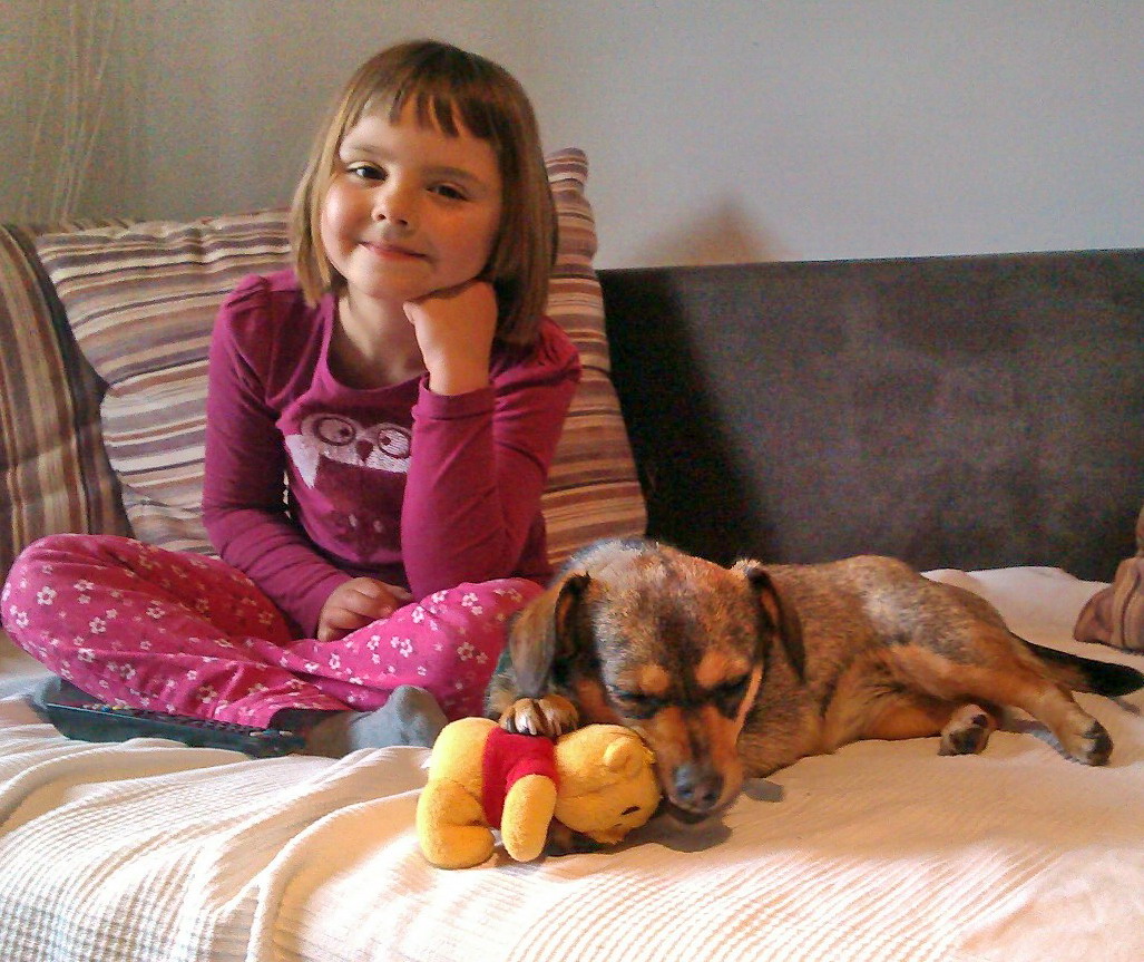 wir sind jetzt mal mit Perla glücklich und zufrieden am Sofa angelangt. Anbei die ersten Bilder von uns, die Zusammenführung mit dem ersten Nachbarshund verlief problemlos und eine Katze liegt auch schon neben Perla am Sofa ...