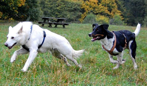 Die letzten Tage waren sehr ereignisreich. Sonntags, wie bereits erzählt, waren wir, 2 Personen und insgesamt 4 Hunde im Wienerwald spazieren. Wir machten einen Waldspaziergang und gingen dann über die Felder retour zum Haus. Er sauste über die Wiesen, dass die Kühe nur so schauten, zog große Kreise; später auch im Garten. Er wuzelte sich in was stinkendem und hopste dann vor Freude herum!