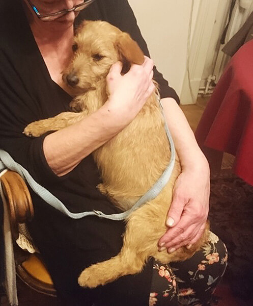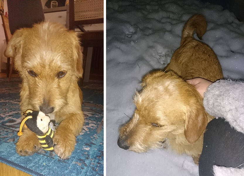 Wir sind hunderte Male hin und her gegangen, bis er sich getraut hat und es klappt mittlerweile wie wenn es nie anders gewesen wäre. Er steigt sogar ohne Probleme in den Aufzug ein. Er frisst brav, kuschelt ohne Ende, geht gerne zu meiner Mama oder meinem Onkel und hört schon brav auf ein paar Befehle, wie Sitz und Männchen. Seinen ersten Beller hat er gestern gemacht, als unser Nachbar aus der Tür kam :-)