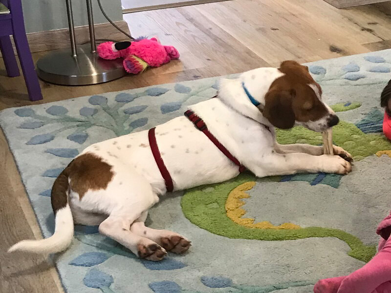 Er ist total brav und tut so als ob er immer bei uns gewohnt hat. Es stimmt, dass er leicht stur ist, besonders wenn es was mit Futter zu tun hat, aber er kann alle Regeln nach einer Minute oder so akzeptieren. Er versteht sich auch sehr gut mit unseren Kindern.