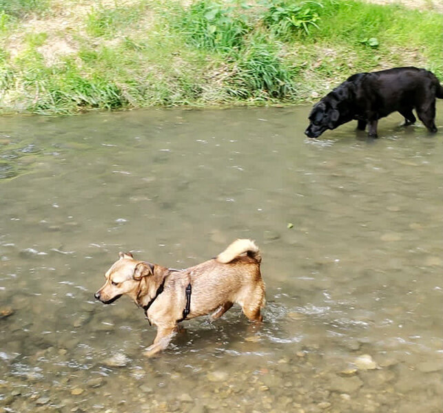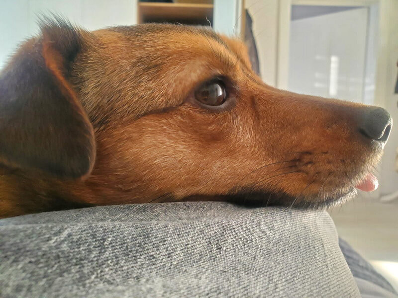 Sie ist nach wie vor ein fröhlicher und unkomplizierter Hund, der am liebsten draußen auf Entdeckungstour geht, drinnen mit uns kuschelt, oder gespannt auf Leckerlis wartet.