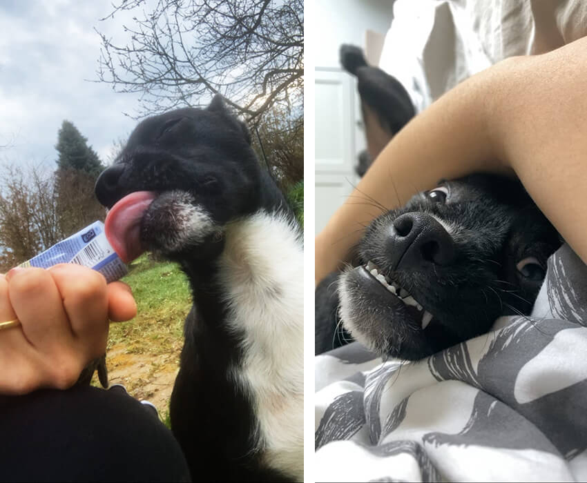 Er ist ein absoluter Schatz, ein richtiger kleiner Sonnenschein der uns nicht mehr von der Seite weicht (außer um ab und zu mal Schabernack zu treiben, wie es bei einem Welpen nun mal sein muss :-)).