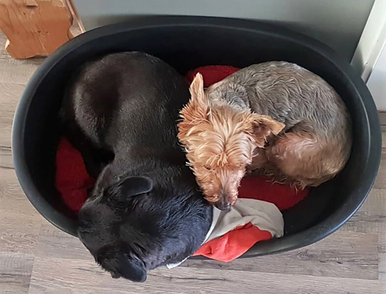Auch mit Jimmy, dem alten Kerlchen, versteht sie sich prima. Die beiden liegen oft beieinander und spielen ganz fantastisch zusammen.