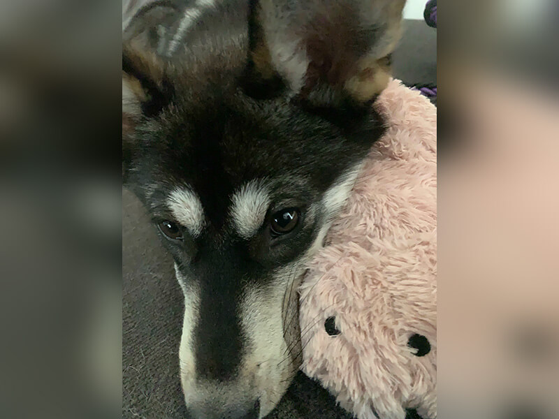 Er ist mein Seelenhund und ich bin absolut stolz auf ihn. Jeden Tag lernt er mehr von seiner neuen Welt kennen und macht das wirklich super. Er liebt Suchspiele und sein rosa Nilpferd, dass man auf dem Foto sehen kann.