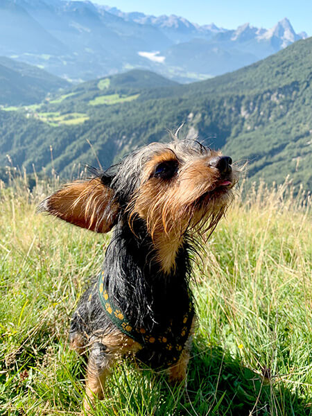 Er macht uns viel Freude, ist in der Hundeschule und auch sonst gelehrig, hat eine feine Nase, sodass wir bereits mit Mantrailing begonnen haben.