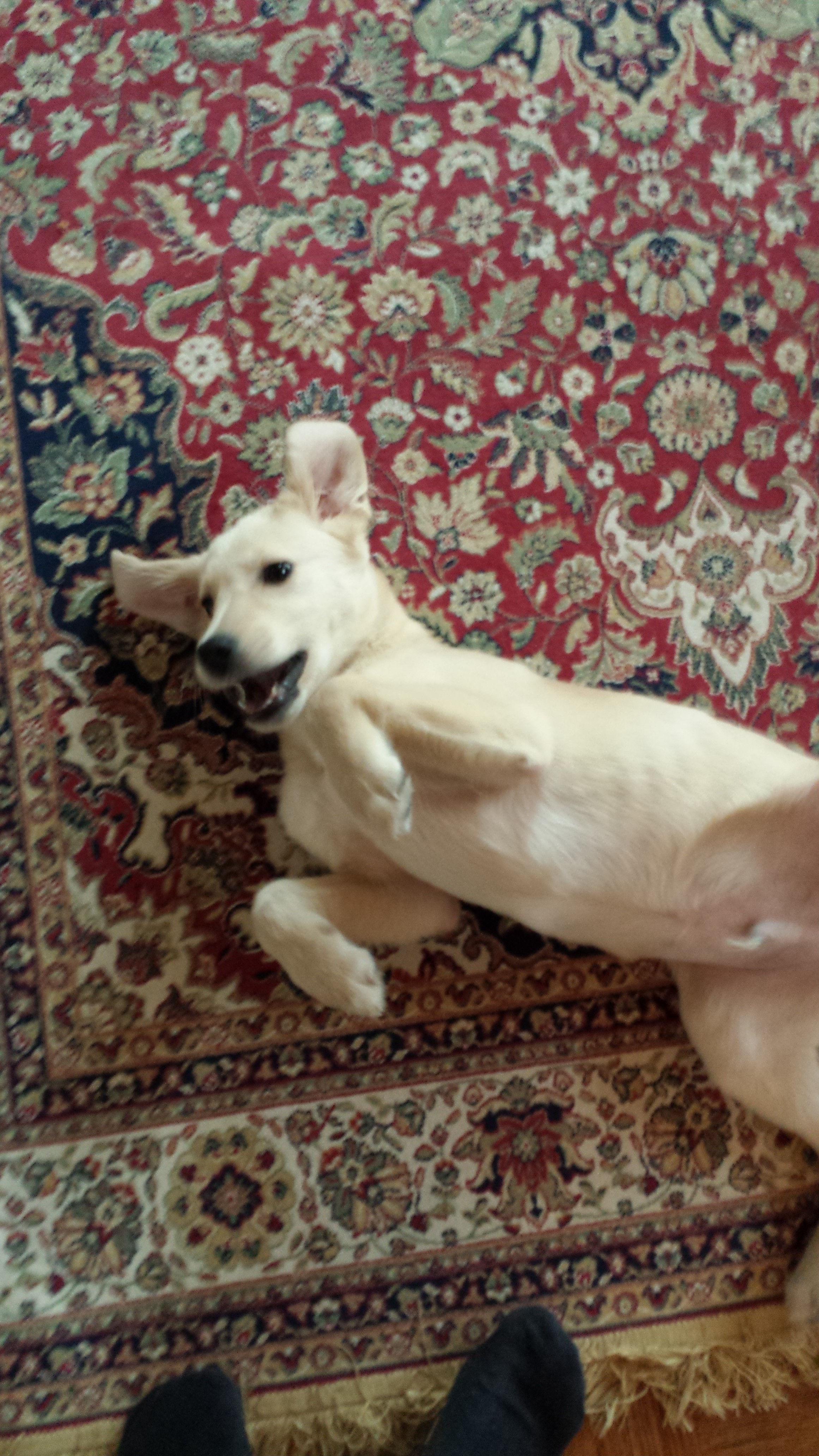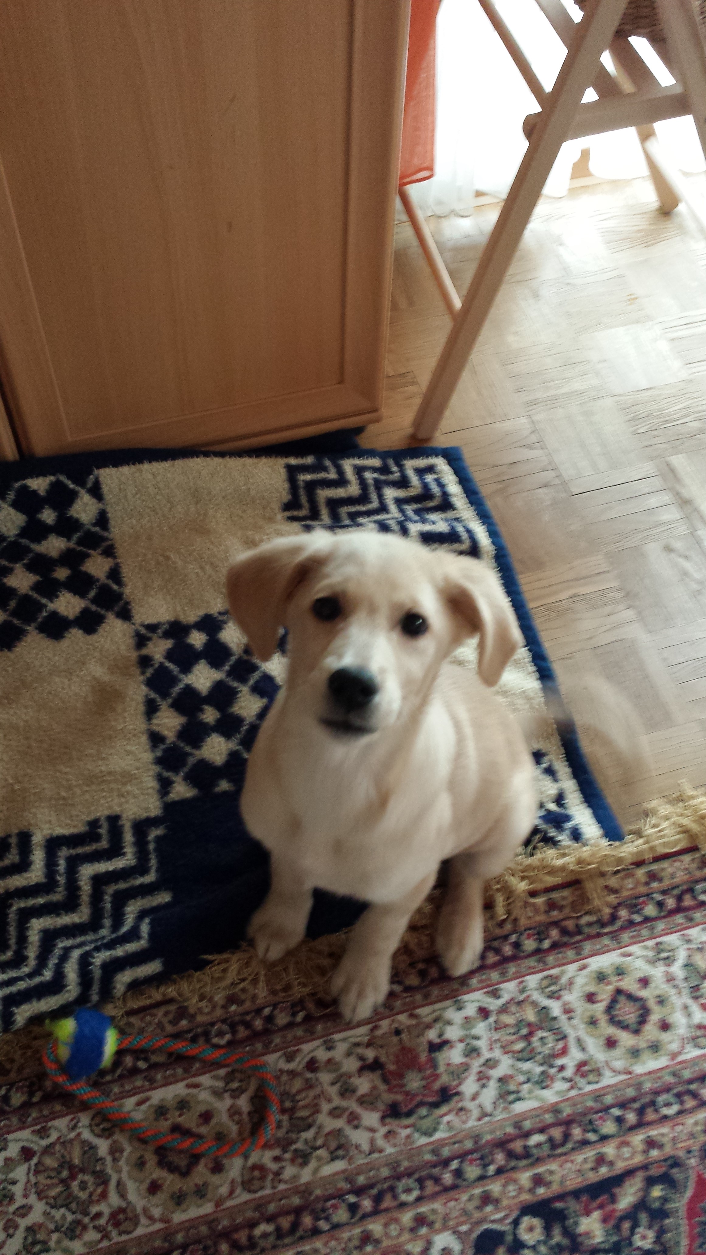 Er kennt den Tagesablauf schon sehr gut und meldet sich bereits ganz brav mit seinen 3 Monaten, wenn er sein "Geschäft" verrichten muss- man muss halt dann schnell sein, sonst geht's doch noch auf den Fußboden...;)