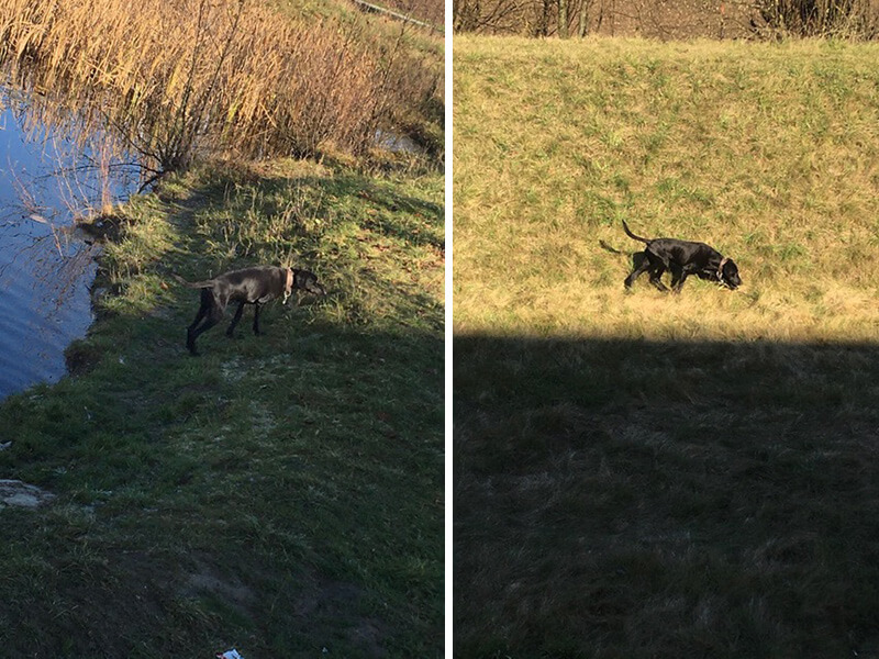 Er ist immer noch total gut drauf, schwimmen, laufen, Stundenlange Spaziergänge usw...