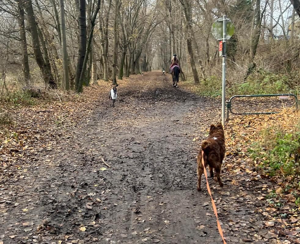 Im Durchschnitt verbringen wir etwa drei Stunden am Tag draußen und haben inzwischen unsere kleine Routine entwickelt. Ronnie kann schon „Sitz“, „Platz“ und „Pfote“ geben, und ich bin wirklich stolz auf ihn. Mittlerweile ist er auch Männern gegenüber nicht mehr so skeptisch.
