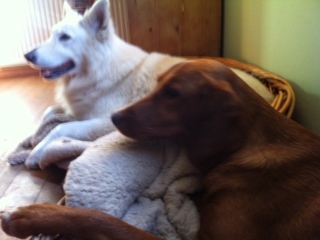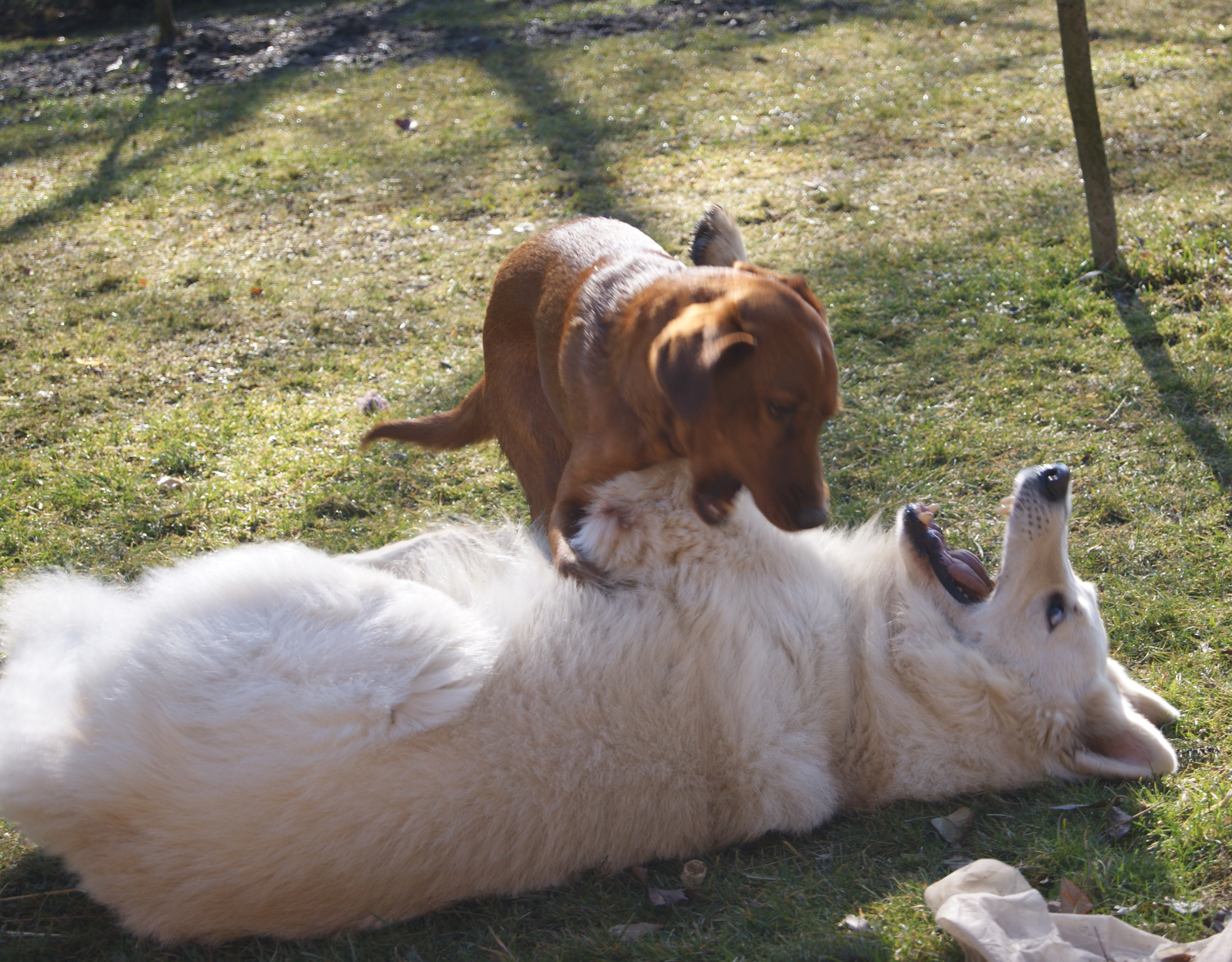 Anbei schicke ich ein paar Fotos. Sie spielt sehr lebhaft mit Peron, meinem weissen Schäferhund – das schaut zwar wild aus, ist aber ganz zärtlich. Peron lässt sich eigentlich alles von ihr gefallen, sie hat aber auch Respekt wie zu einem grossen Bruder, von dem sie viel lernen kann ;-)