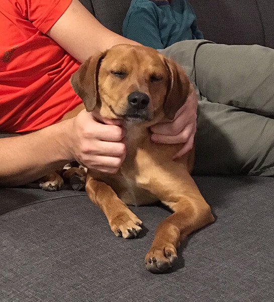 Er ist sehr fröhlich und sehr verschmust und alle Familienmitglieder haben ihn bereits tief ins Herz geschlossen. (Sogar unser älterer Sohn, welcher grundsätzlich etwas zurückhaltender ist, geniest bereits Sam’s Bussis und bedankt sich seinerseits mit Streicheleinheiten.)