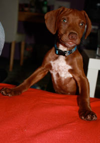 Sammy ist nun bald 2 Monate bei uns, ihm geht es sehr gut, er entwickelt sich prächtig. Er hat unser Leben ganz schön auf den Kopf gestellt. Durch sein liebevolles, verspieltes Wesen und durch seine außergewöhnliche Farbe, ist er der Star, wohin wir auch kommen. Er ist ein Bereicherung für die ganze Familie, er liebt Kinder, doch am liebsten spielt er mit anderen Hunden - ob groß oder klein. Sammy ist viel draußen, da wir auf dem Land wohnen, kann er den ganzen Tag im Garten spielen. Am meisten jedoch liebt er die täglichen Spaziergänge im Wald.