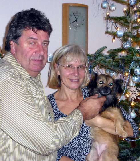Gucci - er heißt nun Samy - ist jetzt zweieinhalb Wochen bei uns und wir denken, dass er sich vom ersten Tag an gleich sehr wohl bei uns gefühlt hat und er ein äußerst braver und lieber Hund ist. Auch Ena unsere "Enkelhündin" hat sich nach kurzer Zusammengewöhnungszeit, in der sie ein bisschen eifersüchtig war, an Samy gewöhnt und nun spielen sie schon miteinander. Anbei senden wir Ihnen noch einige Bilder von Samy und Ena.