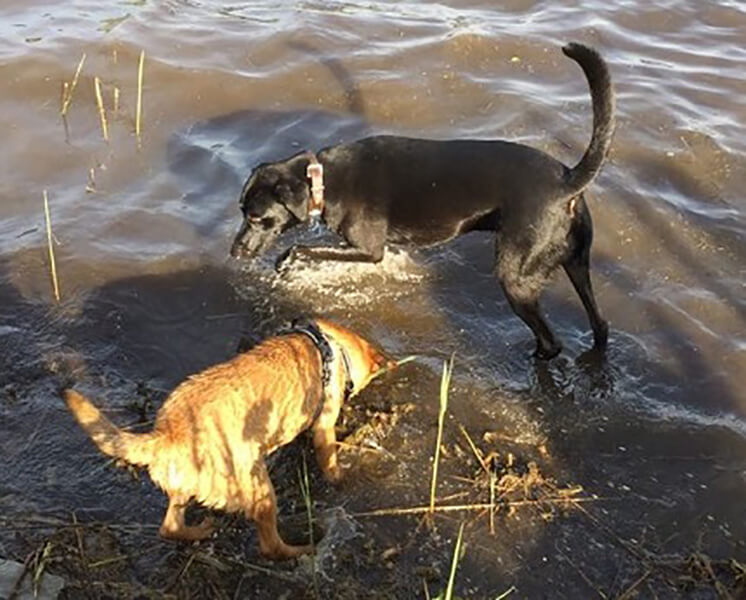 Am meisten Freude hat er jedoch mit dem Nachbarhund "Roco". Wenn das Wetter passt gehen die zwei gerne Baden in den nahegelegenen See. Lange Wanderungen über Stock und Stein und Autofahren sind für ihn kein Problem.