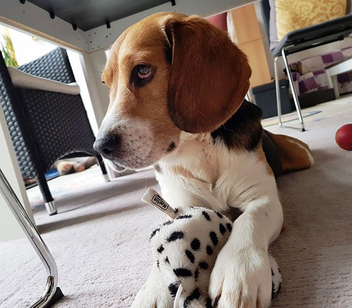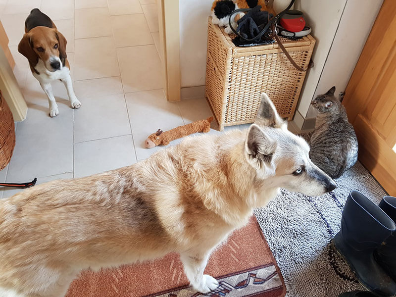 Er hat sich wirklich schon gut eingelebt und versteht sich mit unserer Hündin Jeannie und Hauskatze Angelina schon sehr gut.